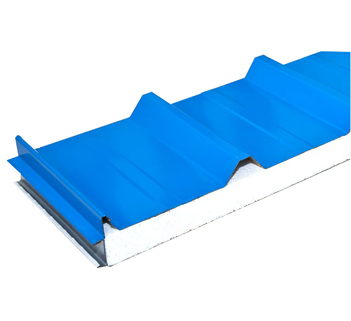 瓦楞彩钢夹芯板 集瓦楞板及夹芯板于一体,比普通平面彩钢夹芯板强度增加了三倍,采用隐藏式自钻螺钉与屋架联接,不破坏彩涂板的外露部分,延长了彩钢夹芯板的寿命;板与板联接采用扣帽式,便于施工,提高功效,特点不易渗水。具有质轻、高强、色泽丰富、施工方便快捷、抗雷、防火、防雨、寿命长、免维护等特点,现已被广泛推广应用。